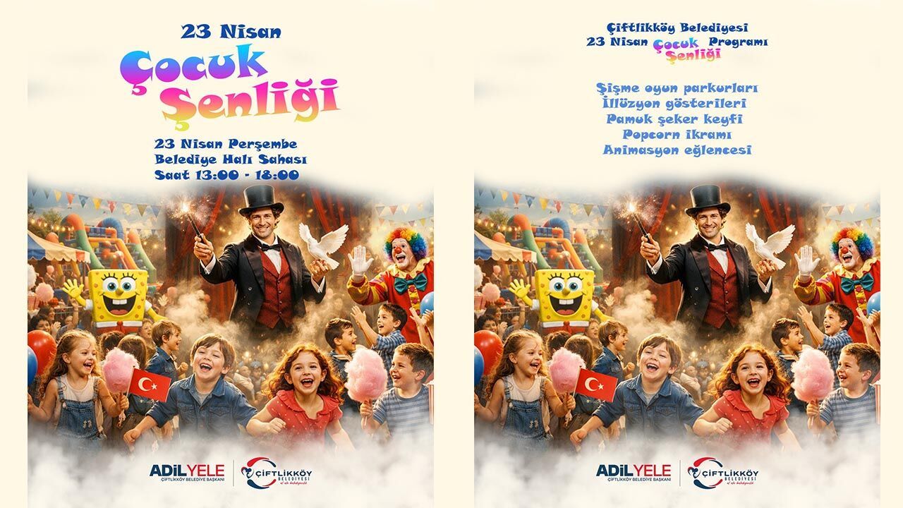 Çiftlikköy’de 23 Nisan Ulusal Egemenlik ve Çocuk Bayramı, bu yıl da çocuklar için adeta büyük bir şenliğe dönüşüyor. Belediye Kapalı Halı Sahası’nda düzenlenecek Çocuk Şenliği ile bayram coşkusu gün boyu sürecek.