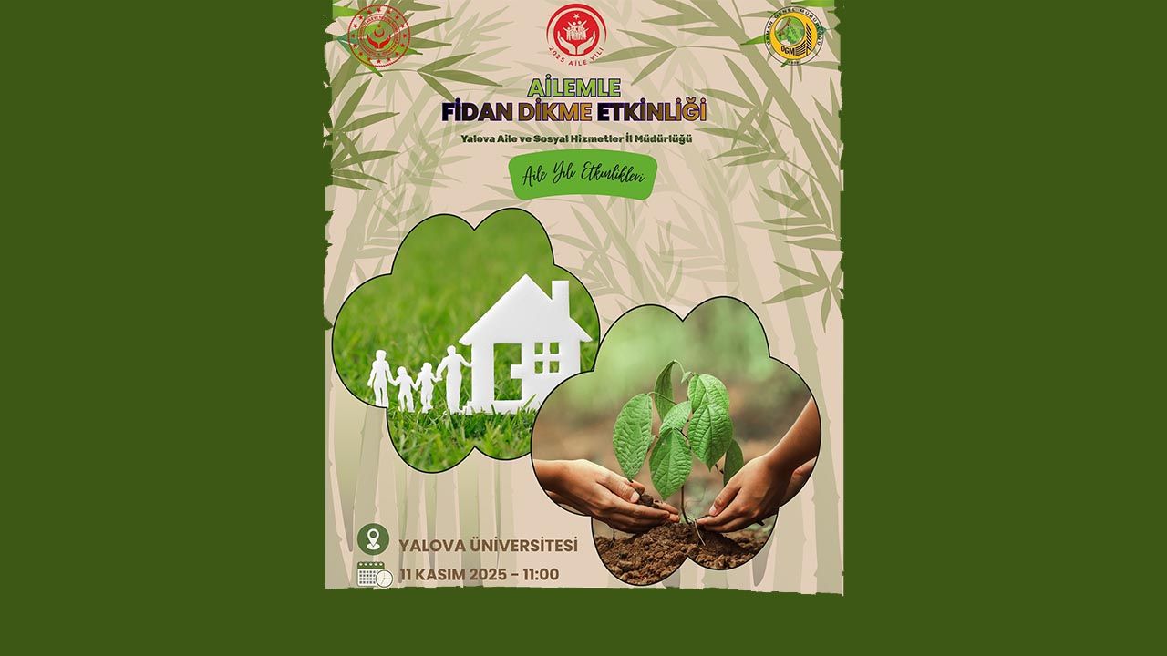 Yalova Aile ve Sosyal Hizmetler İl Müdürlüğü tarafından düzenlenen ağaç dikim etkinliği, 11 Kasım 2025 tarihinde saat 11.00’de Yalova Üniversitesi kampüsünde gerçekleştirilecek. Etkinlikte aileler, doğaya katkıda bulunmanın yanı sıra birlikte keyifli vakit geçirme fırsatı bulacak. Tüm ailelerin davetli olduğu etkinlikte katılımcılar fidanları toprakla buluşturacak ve çevre bilincini pekiştirecek.