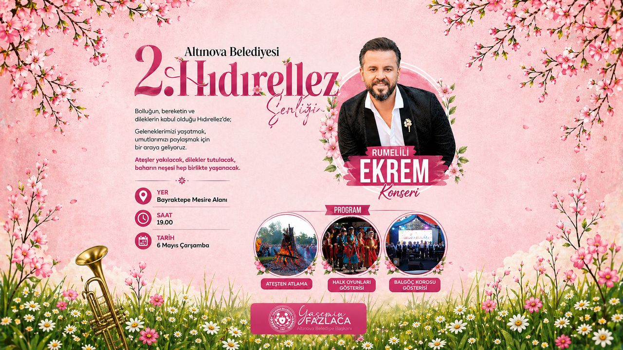 6 Mayıs Çarşamba günü Bayraktepe Mesire Alanı’nda gerçekleştirilecek olan şenlikte, Rumeli müziğinin sevilen ismi Rumelili Ekrem sahne alacak. Program kapsamında ayrıca Bal-Göç Korosu’nun ezgileri ve Altınova Belediyesi Halk Oyunları Topluluğu’nun gösterileriyle coşku doruğa çıkacak. Saat 19.00’da başlayacak etkinlikte katılımcılar, Hıdırellez geleneğinin vazgeçilmezi olan ateş üzerinden atlama ve dilek tutma ritüellerini hep birlikte gerçekleştirecek.