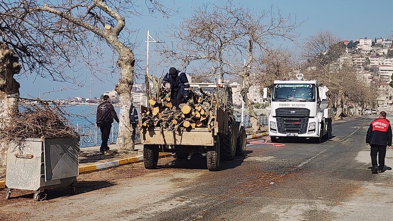 Baharın gelişiyle birlikte Esenköy Sahil Caddesi’nde başlatılan bakım ve temizlik çalışmaları devam ediyor. Esenköy Belediyesi, Ramazan Bayramı ve yaz sezonu öncesinde sahil bölgesini daha düzenli ve estetik bir görünüme kavuşturmak için çalışmalarını sürdürüyor. Esenköy Belediyesi Fen İşleri Müdürlüğü’ne bağlı Garaj Amirliği ekipleri tarafından yürütülen çalışmalar kapsamında cadde üzerindeki ağaçlarda budama işlemleri gerçekleştirildi. Ağaçların sağlıklı gelişimini sağlamak amacıyla yapılan budamanın ardından yola düşen dallar ve atıklar ekipler tarafından toplandı. Temizlik çalışmalarının devamında cadde yıkanarak tamamen temiz hale getirilirken sahil güzergahında hem çevre düzeni hem de görüntü kirliliğinin önüne geçilmesi hedeflendi.