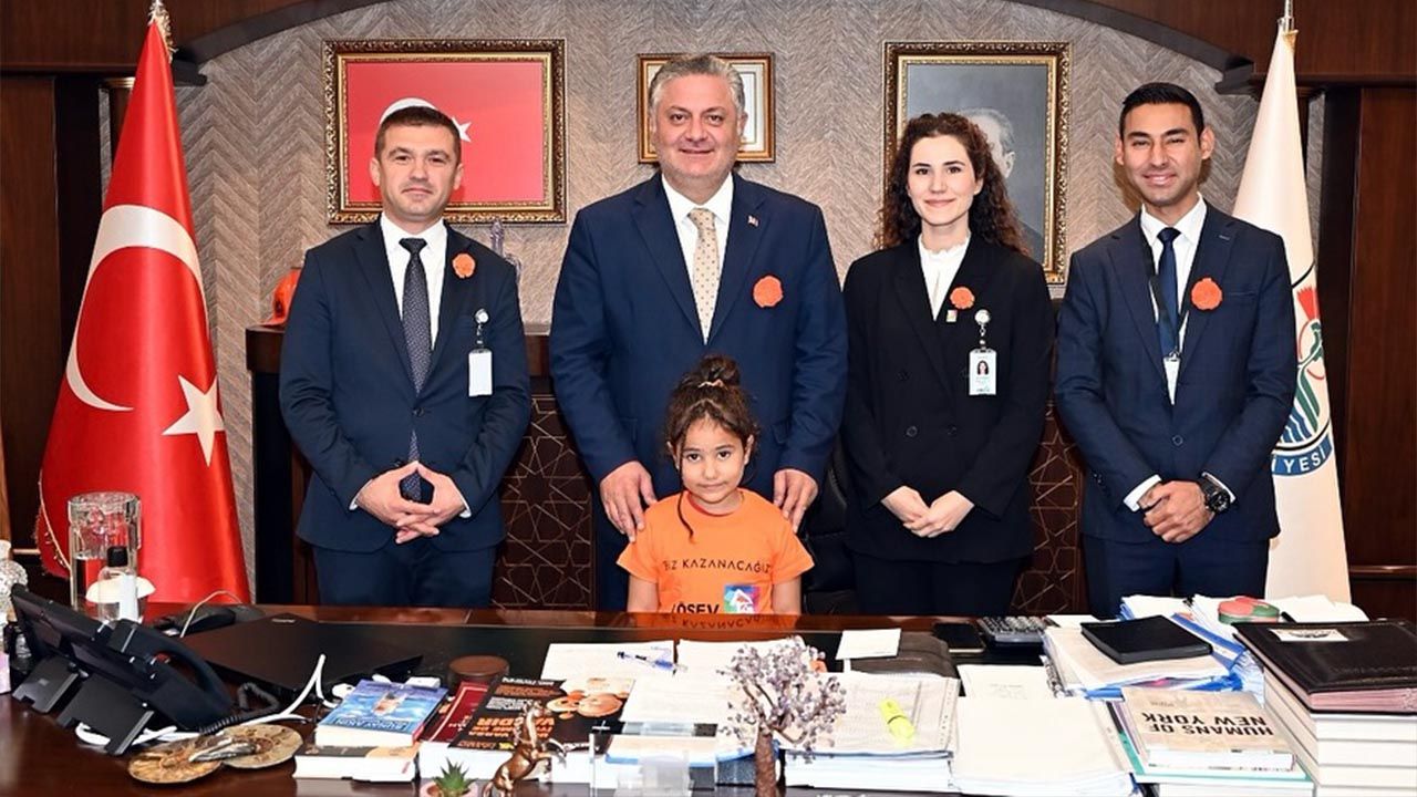 LÖSEV Bursa Halkla İlişkiler Yönetmeni Onur Dönmez, LÖSEV Bursa Lösemili Çocuklar Bilim ve Doğa Enstitüsü Kurucu Yöneticisi Mesut Barut ve Sosyal Hizmet Personeli Esin Musaoğlu’nun da katıldığı ziyarette, çocuklar Başkan Gürel tarafından belediye makamında ağırlandı.