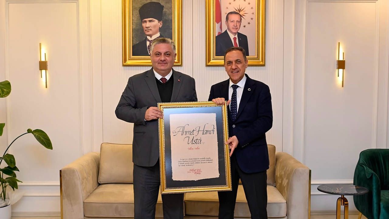 Başkan Mehmet Gürel, ziyaretin anısına Vali Usta’ya İbrahim Müteferrika Kağıt Müzesi atölyelerinde geleneksel yöntemlerle üretilen Yalova Kağıdı’na adının yazılı olduğu kağıt tablo hediye etti.