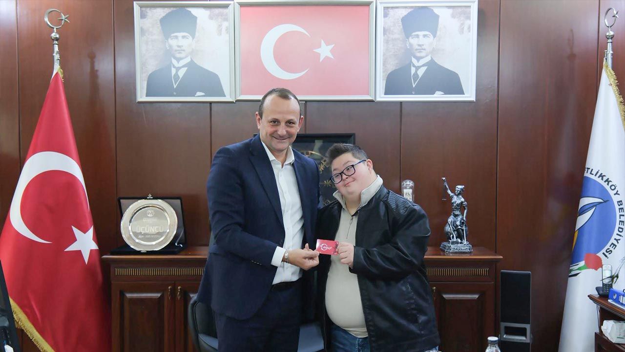 Çiftlikköy Belediye Başkanı Adil Yele’nin hayata geçirdiği Elele Kart uygulamasının kapsamı, engelli bireyleri de kapsayacak şekilde genişletildi. Çiftlikköy Belediyesi’ne bağlı tüm sosyal tesislerde yüzde 30 indirim imkânı sunan Elele Kart’ın avantajlarından, yeni yıl itibarıyla artık engelli bireylerin de faydalanabildiğini belirten Başkan Yele, bu kapsamdaki ilk Elele Kart’ı da Çiftlikköy’ün sempatik yüzü, Hamza Ubeyd Örence’ye takdim etti.