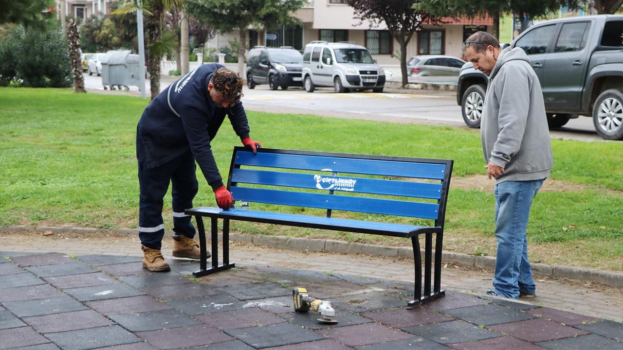 Çiftlikköy Belediyesi Park ve Bahçeler Müdürlüğü ekipleri, ilçedeki parklara yeni bir soluk kazandırmaya devam ediyor. Belediyenin kaynak atölyesinde üretilen kamelya, bank ve çöp kovaları artık sahada kullanılmaya başlanırken, ilk uygulamalardan biri Çiftlik Mahallesi’nin en büyük parkı olan Kırımoğlu Parkı’nda gerçekleştirildi.
