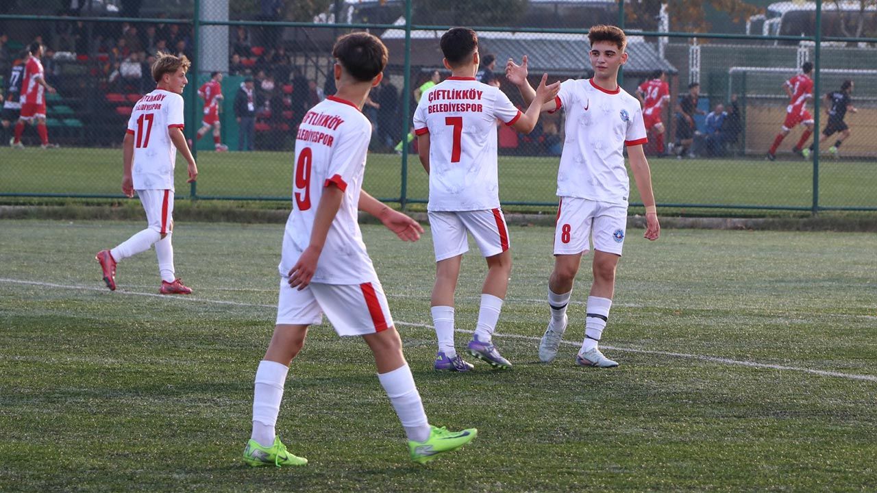 U-14’lerde de fırtına gibi esen kırmızı siyahlılar, U-14 Ligi B Grubu’nda Tavşanlı deplasmanında Tavşanlı Belediyespor’la kozlarını paylaştı. Kuzey Öztürk ve Kerem Serdar’ın hat-trick yaptığı mücadelede Umutcan Yıldırım 2, Kerem Dangaç ise 1 gol kaydetti. Mücadeleden 9-0’lık üstünlükle ayrılan Çiftlikköy Belediyespor U-14’leri, haftayı 9 puanla ilk sırada kapattı.
