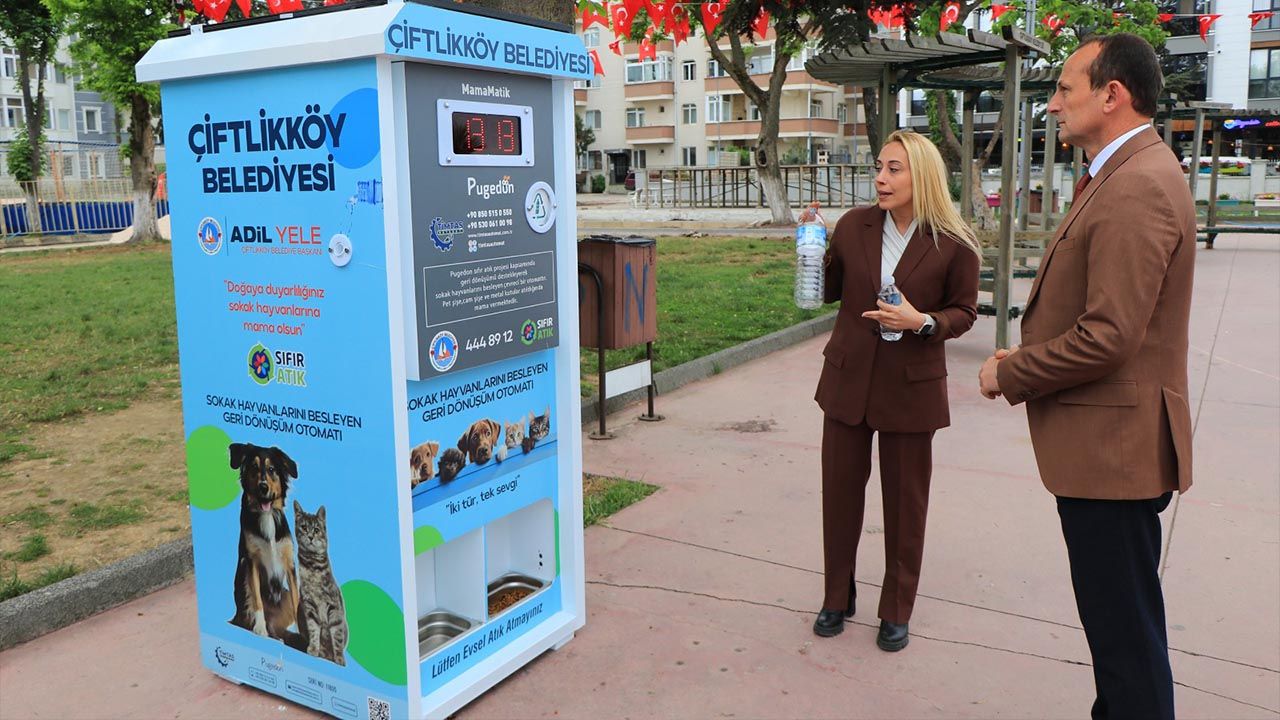 Çiftlikköy Belediyesi’nin 2024 yılında devreye aldığı otomatlara atılan toplam 120 bin adet geri dönüştürülebilir atık, sokak hayvanları için mama ve su desteği olarak geri döndü.
