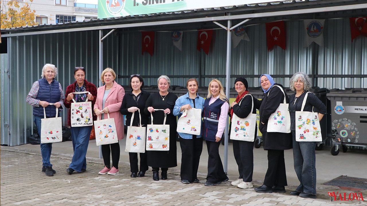 Çiftlikköy Belediyesi İklim Değişikliği ve Sıfır Atık Müdürlüğü’nde bez çanta atölye çalışması gerçekleştirildi. Etkinliğe Çiftlikköy Belediye Başkanı Adil Yele’nin eşi Yeşim Yele’nin yanı sıra Sahil Mahallesi Muhtarı Özlem Yılmaz da katıldı. Belediye Sıfır Atık Tesisleri’nde yapılan etkinlikte bez çantalara çeşitli figürler çizen kadınlar, ardından akrilik boyalarla figürlerini renklendirdi. Rengarenk boyalarla çeşitli desenler oluşturan ekip, etkinlik sonrasında bez çantalarıyla birlikte hatıra fotoğrafı çekildi. Etkinliğe ev sahipliği yapan Belediye İklim Değişikliği ve Sıfır Atık Müdürü Emine Yeşim Aras, geri dönüşümden elde edilen malzemelerle imal edilen bez çantaları daha şık bir görünüme kavuşturmak amacıyla yapılan atölye çalışmasında, aynı zamanda birer tasarım da oluşturulduğunu ifade etti. Aras, “Böylece geri dönüşüme katkı sağlandığı gibi, etkinliğe katılan kadınlarımız kendi estetik anlayışları doğrultusunda el becerilerini de geliştirmiş oluyor” diye bilgi verdi.