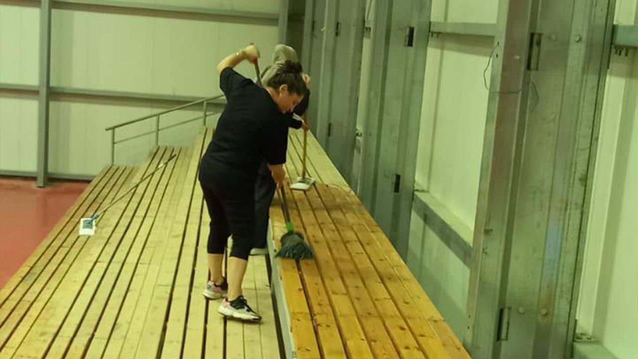Esenköy Belediyesi Spor Kompleksi’nde bulunan kapalı spor salonu, beldenin duyarlı hanımları tarafından gönüllü olarak temizlendi. Haftanın belirli günlerinde spor yapmak için kullandıkları salona sahip çıkan kadınlar, seyirci tribünlerinden alt bölümlere kadar tüm alanları titizlikle temizleyerek örnek bir çalışmaya imza attı. Esenköy Belediye Başkanı Mehmet Temel gönüllü hanımlara teşekkür ederek gösterdikleri hassasiyetin toplum dayanışması açısından büyük önem taşıdığını vurgulayarak “Bu anlamlı ve özverili davranışlarından dolayı tüm hanımlarımıza gönülden teşekkür ediyor, toplumsal duyarlılığa yaptıkları katkıdan ötürü kendilerini tebrik ediyoruz” açıklamasında bulundu.