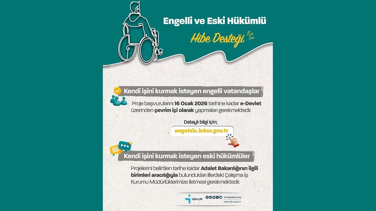 Kurumdan yapılan açıklamada, söz konusu desteğin dezavantajlı grupların ekonomik hayata entegrasyonunu sağlamak ve girişimciliği teşvik etmek amacıyla hayata geçirildiği belirtildi. Başvuru sürecinde engelli vatandaşların projelerini 16 Ocak 2026 tarihine kadar e-Devlet sistemi üzerinden çevrim içi olarak iletmeleri gerektiği vurgulandı. Sürece dair detaylı bilgilere ise kurumun internet adresi olan engelsiz.iskur.gov.tr üzerinden ulaşılabileceği kaydedildi.