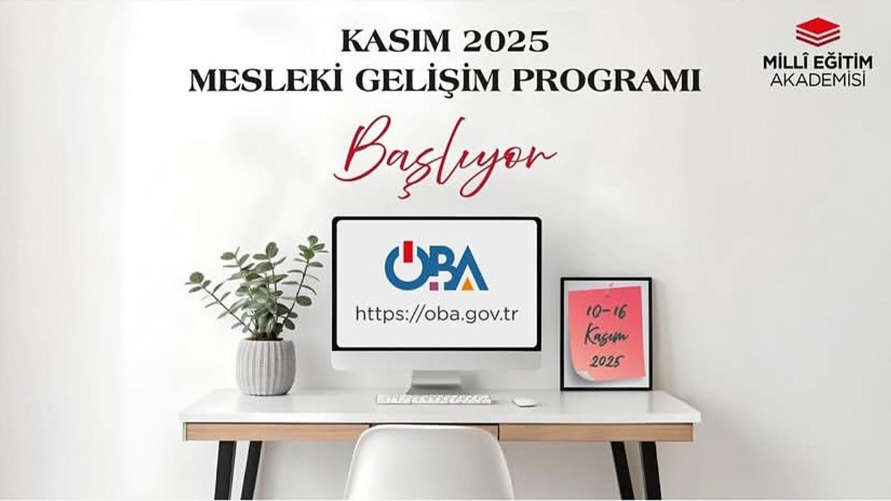 Milli Eğitim Bakanlığı’na bağlı tüm eğitim kurumlarında görev yapan yönetici ve öğretmenler, Kasım 2025 Mesleki Çalışmalar Seminerini 10-16 Kasım 2025 tarihleri arasında ÖBA (oba.gov.tr) üzerinden uzaktan eğitim yoluyla gerçekleştirecek. Seminer içerikleri, 10 Kasım 2025 Pazartesi saat 08.00 itibarıyla erişime açılacak, 16 Kasım 2025 Pazar saat 23.59'a kadar platformda yayında kalacak. Belirtilen süre içerisinde eğitimi tamamlayan yönetici ve öğretmenler, Kasım dönemi mesleki çalışma yükümlülüklerini yerine getirmiş olacaklar.