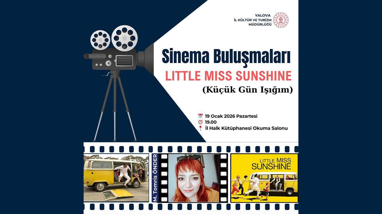 Yalova İl Kültür ve Turizm Müdürlüğü tarafından 2023 yılından bu yana düzenlenen Sinema Buluşmaları her hafta farklı filmler üzerinden gerçekleştirilen film okuma etkinlikleri sinemaseverleri bir araya getiriyor. Bir ailenin birlikte çıktığı yolculuk üzerinden hayata, başarıya ve dayanışmaya dair sıcak ve samimi bir anlatı sunan “Little Miss Sunshine (Küçük Gün Işığım)” filmi ele alınacak. Film üzerine yapılacak okuma ve söyleşi, sinema yazarı M. Tomris Önder’in katılımıyla gerçekleştirilecek. Etkinlik, 19 Ocak 2026 Pazartesi günü saat 19.00’da, İl Halk Kütüphanesi Okuma Salonu’nda düzenlenecek.