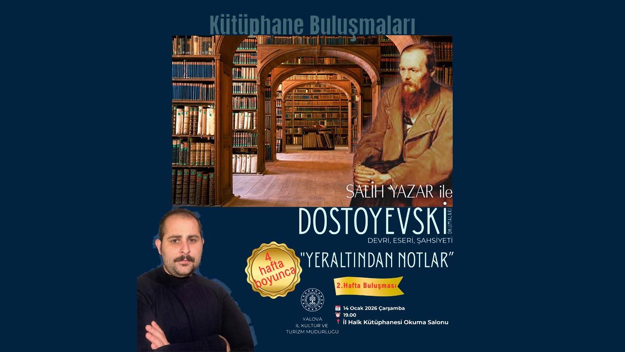 Dostoyevski tutkunları ve edebiyatseverlerin davetli olduğu buluşma, 14 Ocak 2026 Çarşamba günü saat 19.00’da, İl Halk Kütüphanesi Okuma Salonu’nda gerçekleştirilecek.
