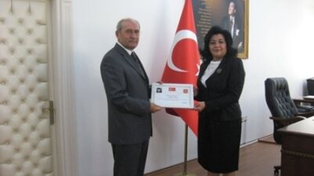 Ziyarette Dernek Başkanı Şakir Güner tarafından katkılarından dolayı Yalova Valisi Esengül Civelek’e teşekkür belgesi ve dernek rozeti takdim etti.