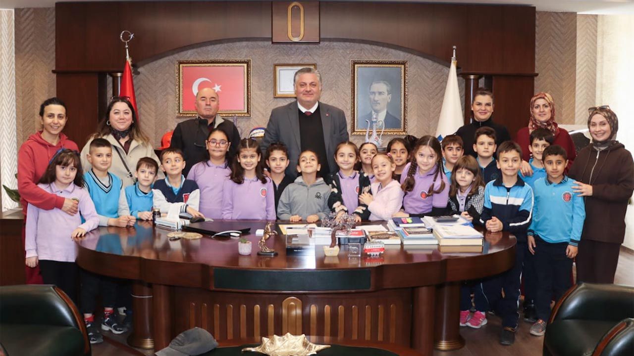 Başkan Gürel’in makamında ağırladığı öğrencilere yerel yönetimlerin görev ve sorumlulukları hakkında bilgi verdi. Belediyelerin şehirde temizlik, park ve bahçeler, ulaşım, altyapı ve sosyal hizmetler gibi birçok alanda çalışmalar yürüttüğünü anlatan Gürel, çocukların sorularını da tek tek yanıtladı.