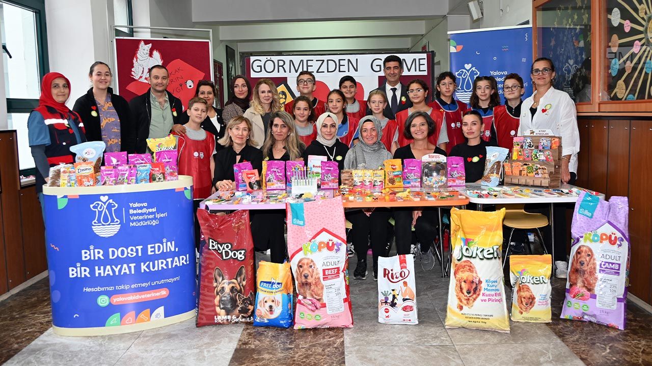 Öğrenciler, kendi aralarında bağış toplayarak ve ürünler satarak elde ettikleri gelirlerle sokak hayvanları için mama alıp Yalova Belediyesi Veteriner İşleri Müdürlüğü’ne teslim ettiler.