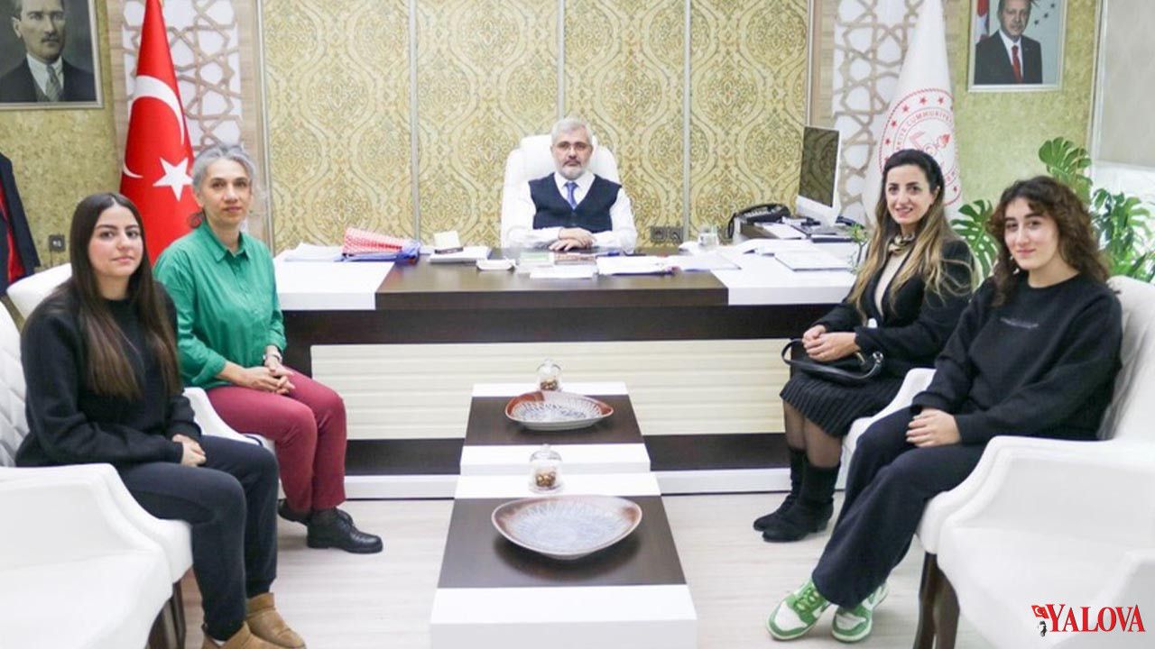 Prof. Dr. Necmettin Erbakan Sosyal Bilimler Lisesi Okul Müdürü Esra Kurt ve beraberindeki öğrenciler, “Yeşil Vatan Benim, Okulum Geleceğe Çağrı” etkinlikleri kapsamında yürüttükleri çevre temalı çalışmaları paylaşmak üzere Yalova İl Millî Eğitim Müdürü Aytekin Yılmaz’ı ziyaret etti.