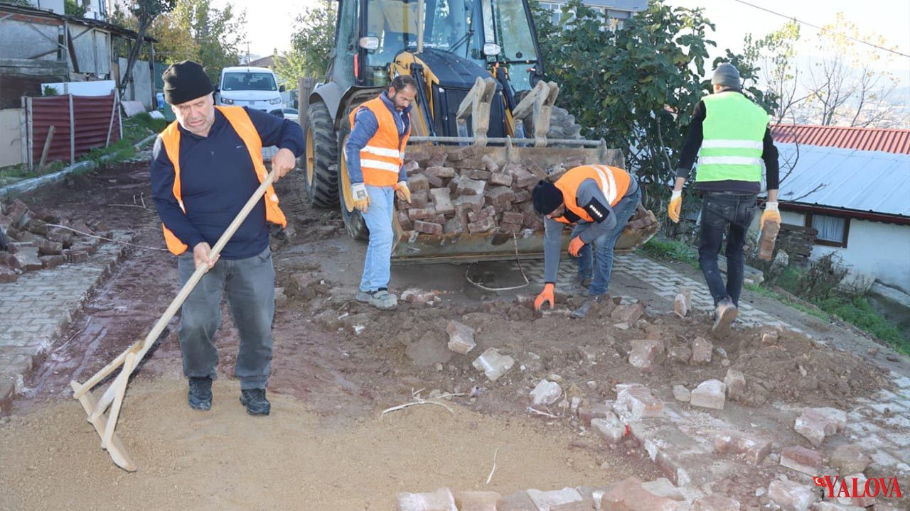 Zamanla bozulan ve sürücüler ile yayalar için risk oluşturan parke taşları, Yalova Belediyesi ekipleri tarafından sökülerek zemin düzenlemesi yapıldı. Ardından yenilenen parke taşları döşenerek yol daha güvenli ve kullanışlı hale getirildi.