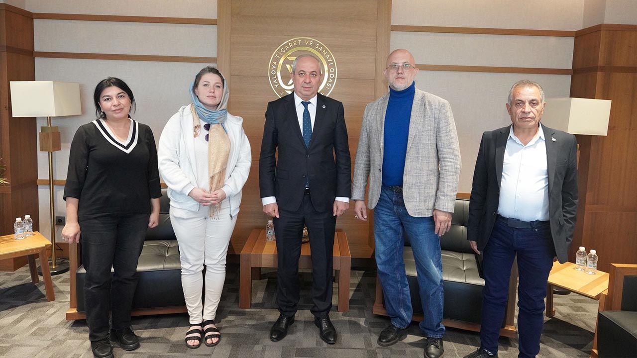 Yalova’da çeşitli temaslarda bulunan Rusya siyasi ve askeri uzmanı Yevgeniy Mihaylov ve eşi, ünlü ressam Anna Maksimova, Yalova Ticaret ve Sanayi Odası Başkanı Cemil Demiryürek’i makamında ziyaret etti.
