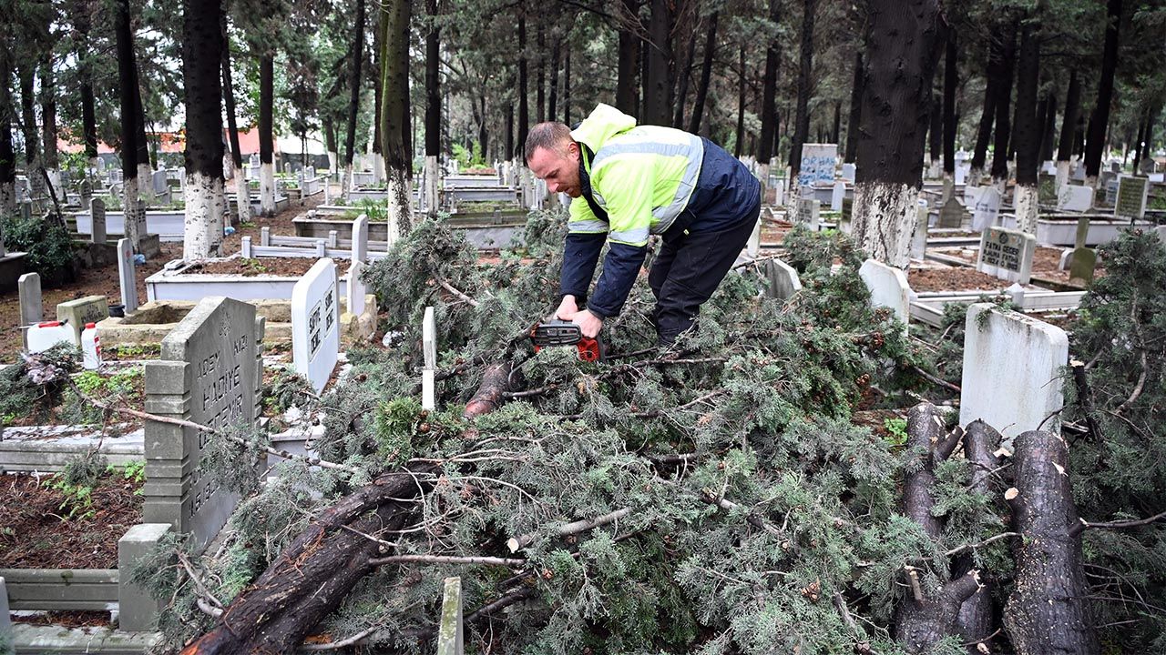 Fırtına nedeniyle bazı ağaçların devrildiği, mezarlık alanında yer yer zararlar oluştuğu gözlemlendi. Yaşanan olumsuzlukların ardından Yalova Belediyesi Mezarlıklar Müdürlüğü ekipleri, zarar gören alanlarda hızla çalışma başlattı. Devrilen ve risk oluşturan ağaçlar kontrollü şekilde yerinden kaldırılırken, kabristan çevresinde güvenliği sağlamak amacıyla gerekli tedbirler alındı. Belediye ekipleri, vatandaşların hassasiyetini gözeterek çalışmalarını titizlikle sürdürürken, hasar tespitinin ardından düzenleme ve temizlik çalışmalarının da en kısa sürede tamamlanması hedefleniyor. Yalova Belediyesi yetkilileri, fırtınanın etkilerinin kent genelinde yakından takip edildiğini, ilgili tüm birimlerin koordinasyon içerisinde sahada görev yaptığını belirterek, vatandaşların herhangi bir olumsuzluk durumunda belediyenin iletişim hatları üzerinden bildirimde bulunabileceklerini ifade etti.