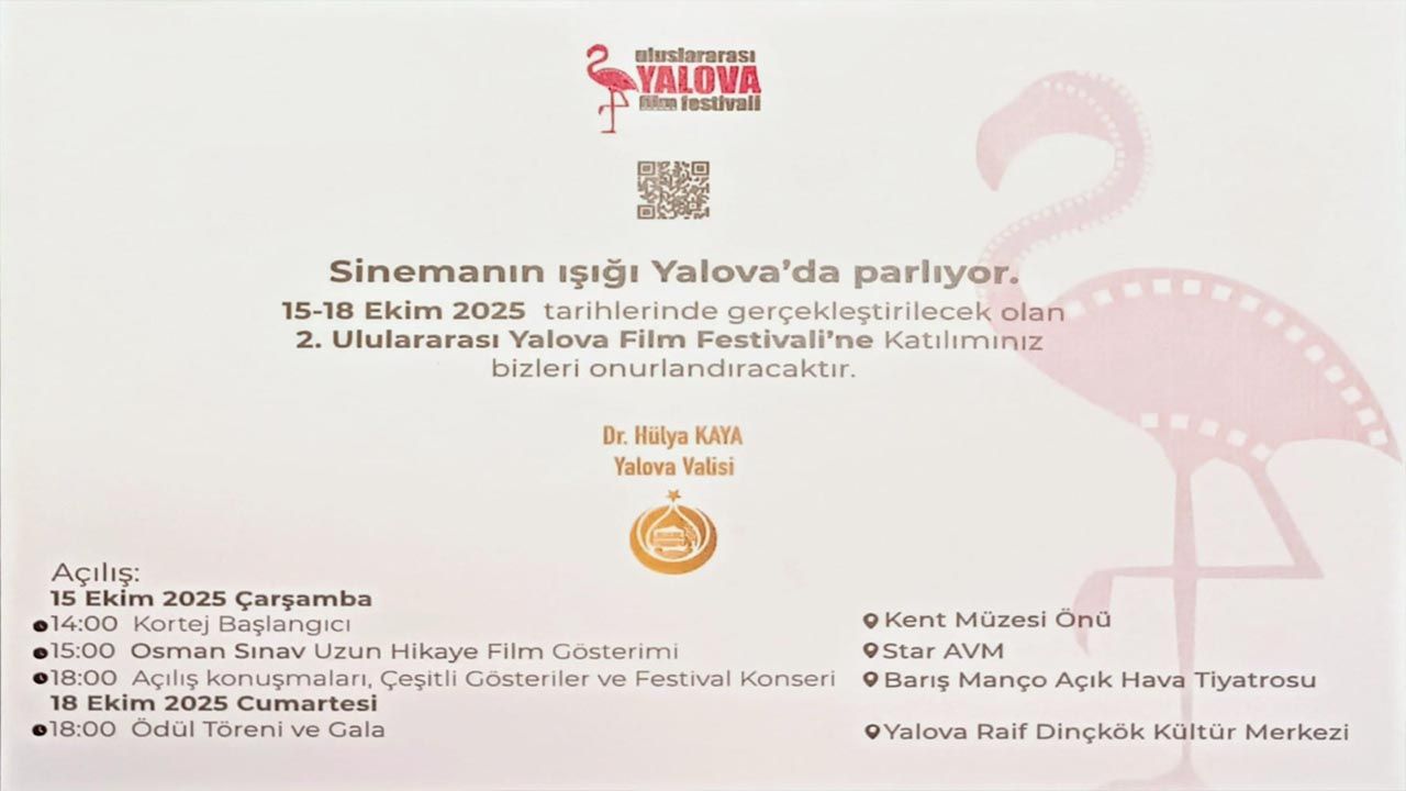 2. Uluslararası Yalova Film Festivali, 15–18 Ekim 2025 tarihleri arasında sinemaseverleri Yalova’da buluşturuyor. Yalova Valisi Dr. Hülya Kaya’nın himayelerinde düzenlenecek festival, film gösterimleri, etkinlikler, konserler ve ödül töreniyle dolu dolu bir program sunacak. Yalova, sinemanın büyüsünü ikinci kez yaşamaya hazırlanıyor. Geçtiğimiz yıl ilki düzenlenen ve büyük ilgi gören Uluslararası Yalova Film Festivali, bu yıl 15–18 Ekim 2025 tarihleri arasında sanatseverlerle yeniden buluşacak. Festival, Yalova Valisi Dr. Hülya Kaya’nın himayelerinde gerçekleştirilecek. Dört gün sürecek festivalde; yerli ve yabancı filmlerin gösterimlerinin yanı sıra çeşitli atölyeler, söyleşiler, konserler ve özel etkinlikler yer alacak. Festival süresince kentin birçok noktasında yapılacak gösterimlerle Yalova, adeta sinemanın kalbi haline gelecek.