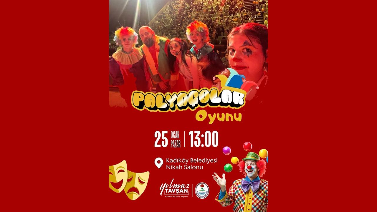 Kadıköy Belediyesi, sömestir tatiline giren çocuklar için eğlence dolu bir etkinliğe imza atıyor. Kadıköy Belediyesi tarafından düzenlenen “Palyaçolar Oyunu” renkli karakterleri, eğlenceli sahneleri ve bol kahkahasıyla minik izleyicilerle buluşacak. Çocukların tatil sürecini daha eğlenceli ve verimli hale getirmeyi amaçlayan etkinlik kahkaha dolu içeriğiyle dikkat çekiyor. Palyaçolar Oyunu, 25 Ocak Pazar günü saat 13.00’te Kadıköy Belediyesi Nikah Salonu’nda sahnelenecek.
