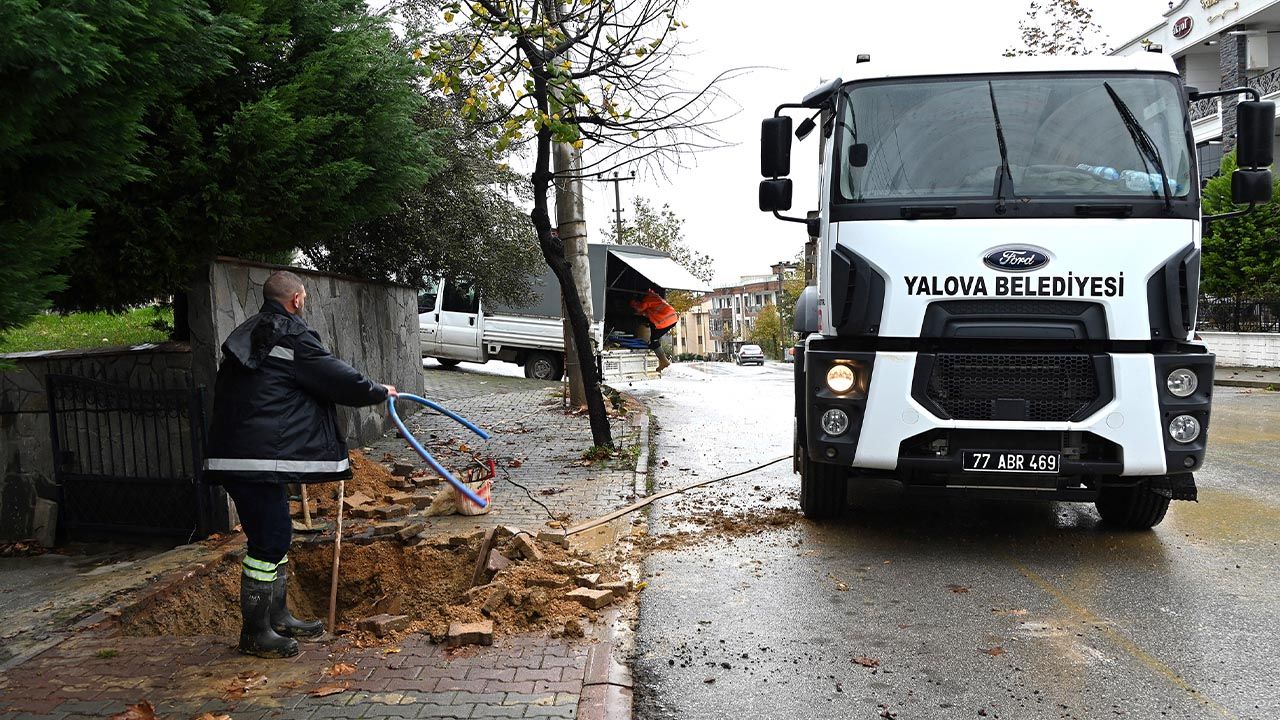 Yalova Belediyesi’nden yapılan açıklamada, “Ekiplerimiz, vatandaşlarımızın çağrılarına kayıtsız kalmadan 7/24 sahada görev yapıyor. Su arızaları, mazgal ve rögar tıkanıklıkları gibi sorunlara en kısa sürede müdahale edilerek şehir yaşamının aksamaması için çalışmalarımız devam ediyor” ifadesine yer verdi.