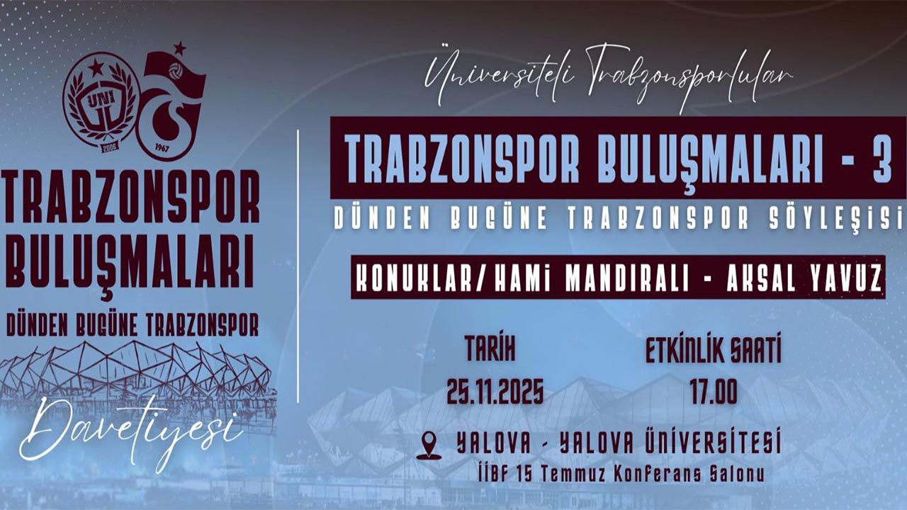 Yalova Üniversitesi Üniversiteli Trabzonsporlular Yalova Ekibi, 25 Kasım Salı günü üniversite kampüsünde dikkat çekici bir söyleşi düzenleyecek.