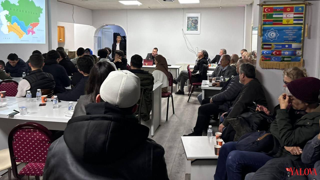 Atavatan Derneği ve Türk İllerinde Bir Güleryüz Platformu’nun öncülüğünde, Atavatan Derneği lokalinde “Türk Devletleri Dış Politikaları” konulu söyleşi düzenlendi. Etkinliğin konuşmacısı, Yalova Üniversitesi Uluslararası Ticaret ve Finansman Bölümü öğretim üyesi Doç. Dr. Kaan Diyarbakırlı oldu. Söyleşi, dernek ve platform üyelerinin yanı sıra Yalova Üniversitesi'nden akademisyenler ve çok sayıda üniversite öğrencisinin katılımıyla yoğun bir ilgi gördü. Türkiye’nin farklı şehirlerinden ve Türk Dünyasının çeşitli bölgelerinden katılımcıların yer aldığı etkinlik, büyük memnuniyetle karşılandı. Programın sonunda Atavatan Derneği Başkanı Tekin Sarıçam ile Türk İllerinde Bir Güleryüz Platformu temsilcisi Sinan Bozoğlu, yaptıkları teşekkür konuşmalarının ardından Doç. Dr. Kaan Diyarbakırlı’ya katkılarından dolayı plaket ve tablo takdim etti.
