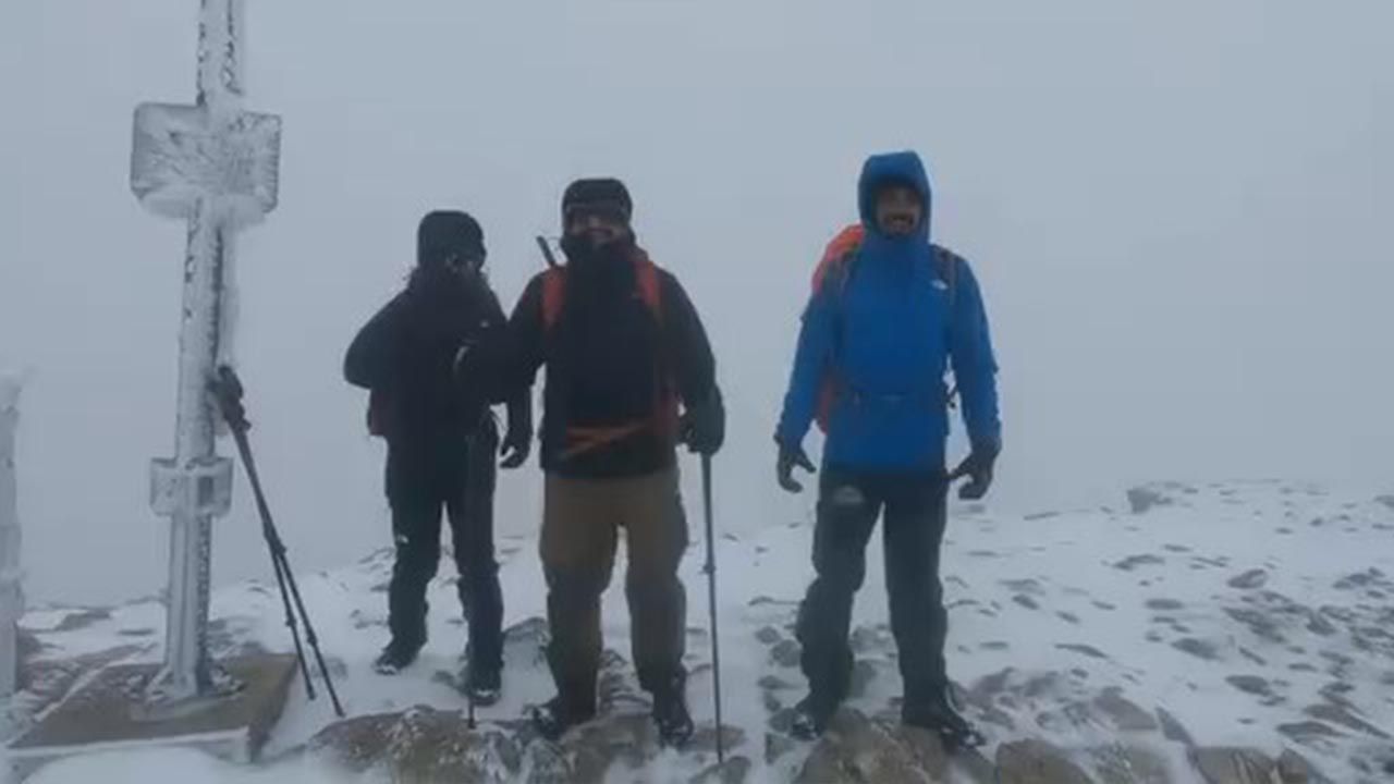 Bursa Yıldırım Dağcılık Kulübü ile Bursa Dağcılık ve Doğa Sporları İhtisas Kulübü üyeleri Uludağ'ın 2543 metrelik zirvesine kış sezonunun tırmanışını gerçekleştirdi. 2543 metrelik zirveye fırtına ve kar yağışı altında yürüyen dağcılar sezonun ilk kar yağışını kutladı.
