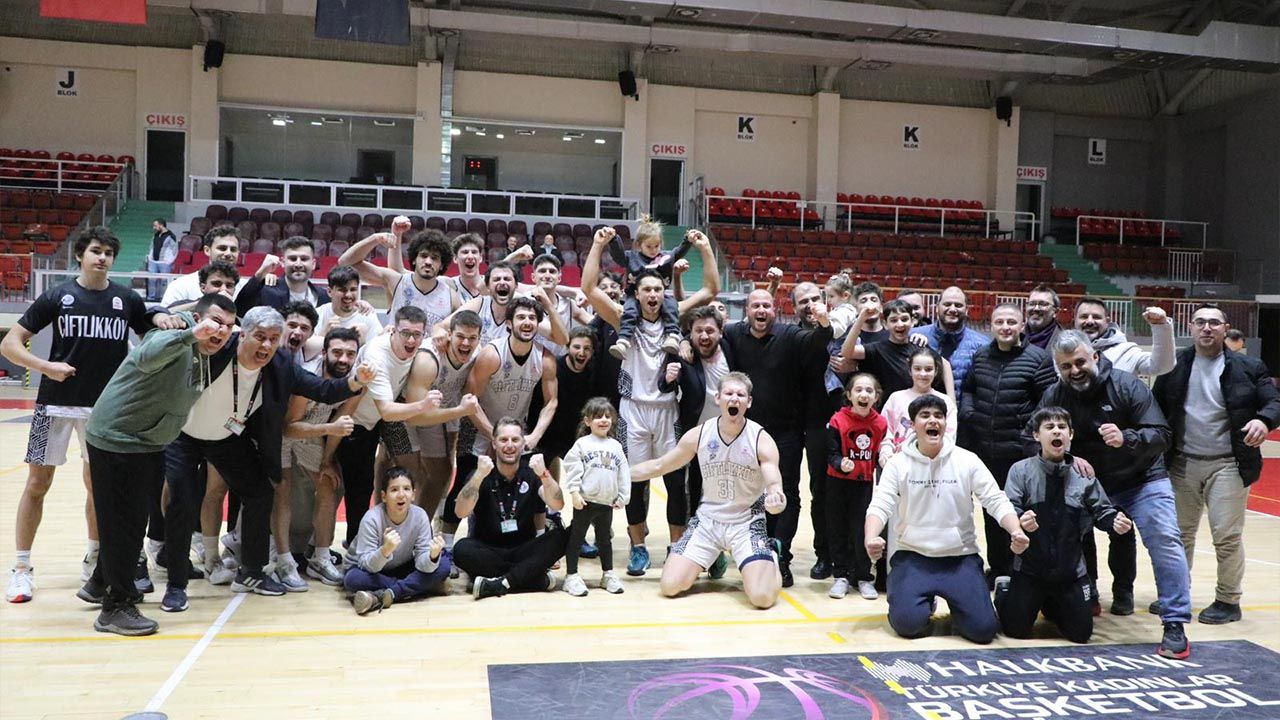 A Grubunun 14. Haftasında Kerasusspor’u ağırlayan Kırmızı Siyahlılar uzatma periyotunun ardından rakibini 80-77 devirdi. Temsilcimizde kenardan gelen Doğancan Tokmak 22 sayı, 5 ribaunt ve 1 asistle yıldızlaşırken ona 15’er sayıyla Fırat Töz ve Ramazan Bulut eşlik etti. Giresun ekibinin en etkili ismi 20 sayı ve 4 ribauntla Mehmet Yakar oldu.