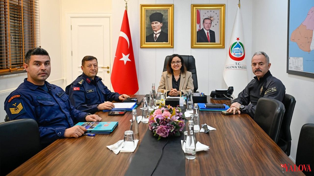 Toplantıda, ülke genelinde alınacak güvenlik, asayiş, trafik ve kamu düzenine yönelik tedbirler ele alındı. Vatandaşların yeni yılı huzur ve güven içerisinde karşılaması amacıyla kurumlar arası koordinasyonun önemi vurgulandı. Toplantıya Yalova’dan; İl Emniyet Müdürü Ümit Bitirik, İl Jandarma Komutanı Jandarma Kıdemli Albay Ercan Altın ve Sahil Güvenlik Komutanı Vekili Sahil Güvenlik Makine Astsubay Kıdemli Üçvş. Sezer Ulutaş da katılım sağladı. Vali Dr. Hülya Kaya, toplantı kapsamında Yalova’da uygulanacak yeni yıl tedbirleriyle ilgili değerlendirmelerde bulunarak, ilgili birimlerin koordinasyon içerisinde çalışmalarını sürdüreceğini ifade etti.