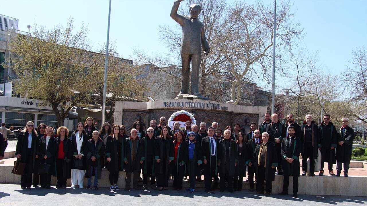 Yalova Barosu Başkanı Avukat Elif Turnacı Çavuş’un öncülüğünde özelinde saat 12:30 itibarıyla toplanan avukatlar, 15 Temmuz Demokrasi ve Cumhuriyet Meydanı’ndaki Atatürk Anıtı’na çelenk bıraktı.