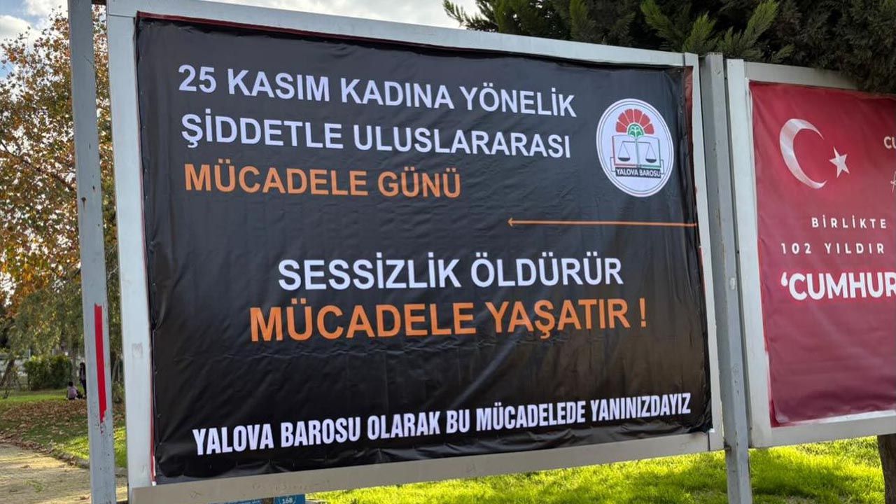 Bu gün özelinde Yalova’nın birbirinden farklı sokaklarındaki bilboardlara hazırladıkları afişleri asan baro, “Sessizlik öldürür, mücadele yaşatır! Yalova Barosu olarak nu mücadelede yanınızdayız” mesajını verdi.