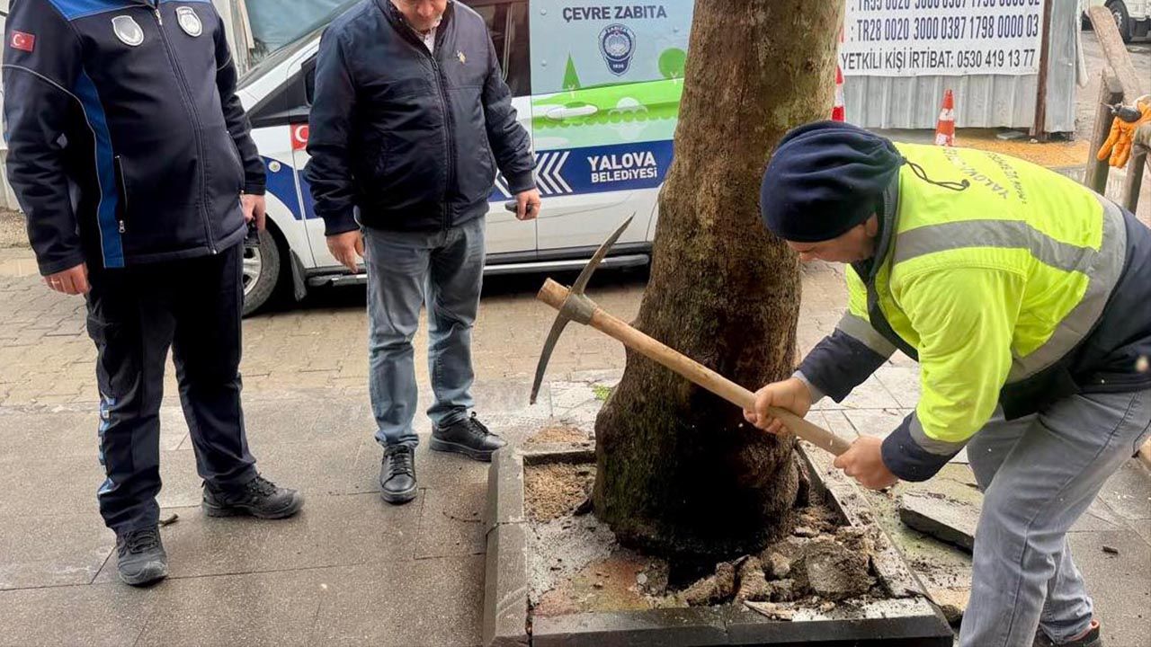 Yalova Belediyesi, yapılan denetimler sırasında Kıbrıs Sokak’ta bulunan bir çınar ağacının dip kısmına beton döküldüğünün tespit edildiğini açıkladı. Belediye ekiplerinin müdahalesiyle beton dökülen alanın eski haline getirildiği bildirildi.