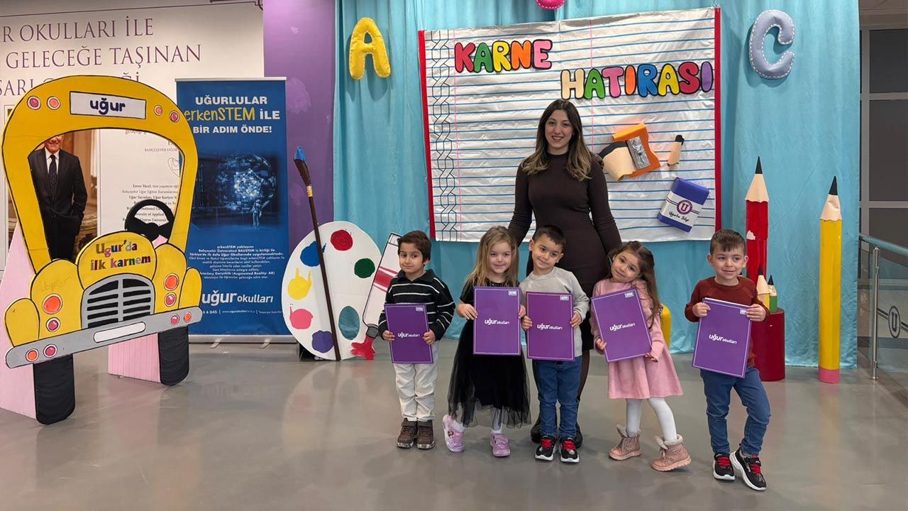 Yalova Uğur Okulları okul öncesi Bloom-B sınıfı öğrencileri karnelerini öğretmenleri Duygu Tanrıkulu Kaş’tan aldı.