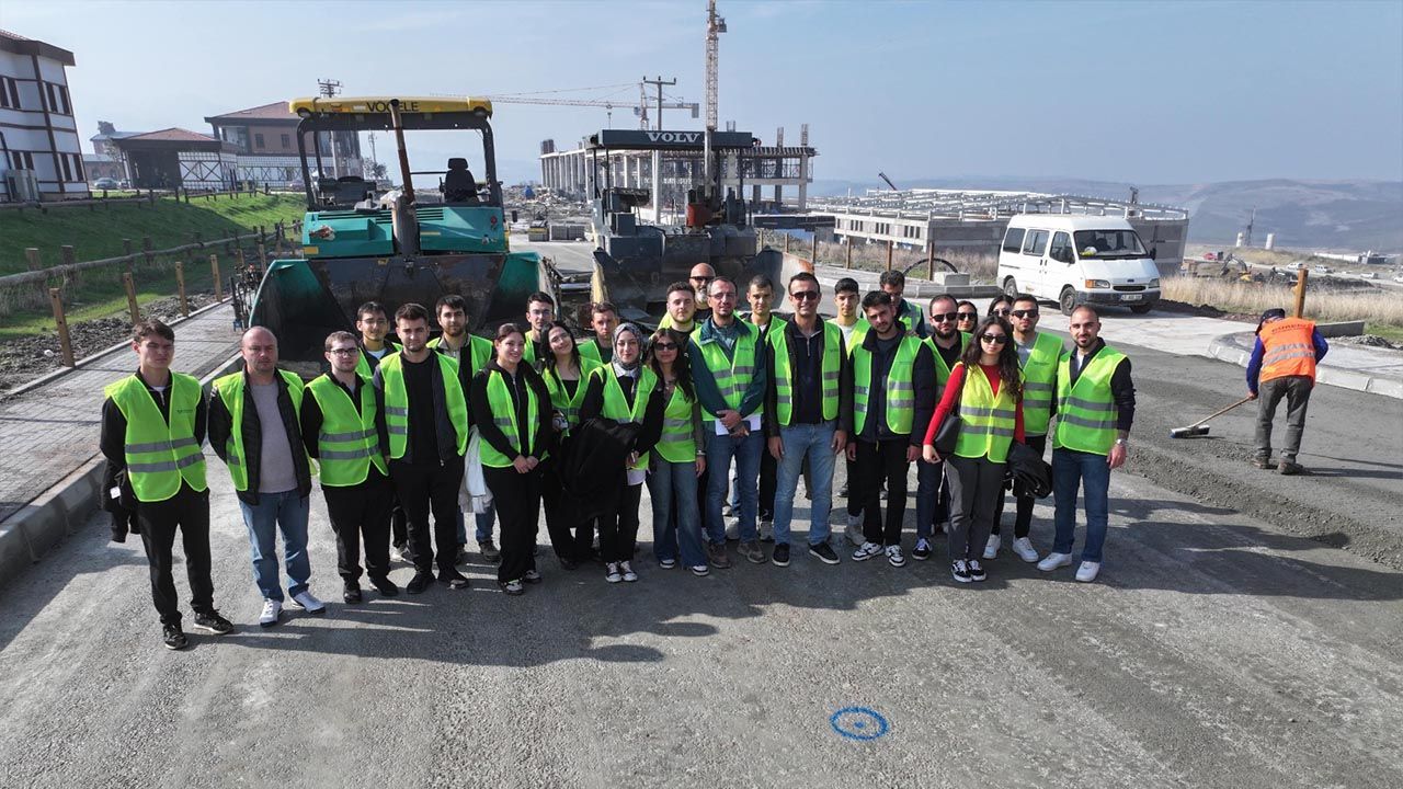 Gerçekleştirilen teknik gezi sırasında öğrenciler, sahada devam eden silindirle sıkıştırılmış beton (SSB) yol imalatlarını yerinde inceledi. Ziyarette, OSB yetkilileri ve teknik ekip tarafından öğrencilere yol yapım süreçleri, kullanılan malzemeler, saha deneyleri ve kalite kontrol testleri hakkında detaylı bilgiler aktarıldı.