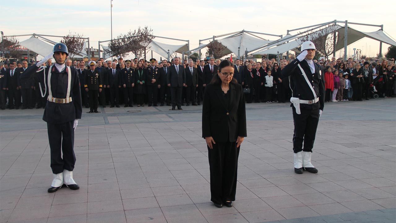 Yalova Valiliği, Yalova Garnizon Komutanlığı, Yalova Belediye Başkanlığı, siyasi partiler, kurumlar ve odalar tarafından Atatürk Anıtına çelenk sunuldu. Çelenklerin sunulmasının ardından saatler 09:05’i gösterdiğinde sirenler çalındı ve 87 yıl önce ebediyete göç eden Türkiye Cumhuriyetinin kurucusu Başkomutan Gazi Mustafa Kemal Atatürk için saygı duruşunda bulunuldu.