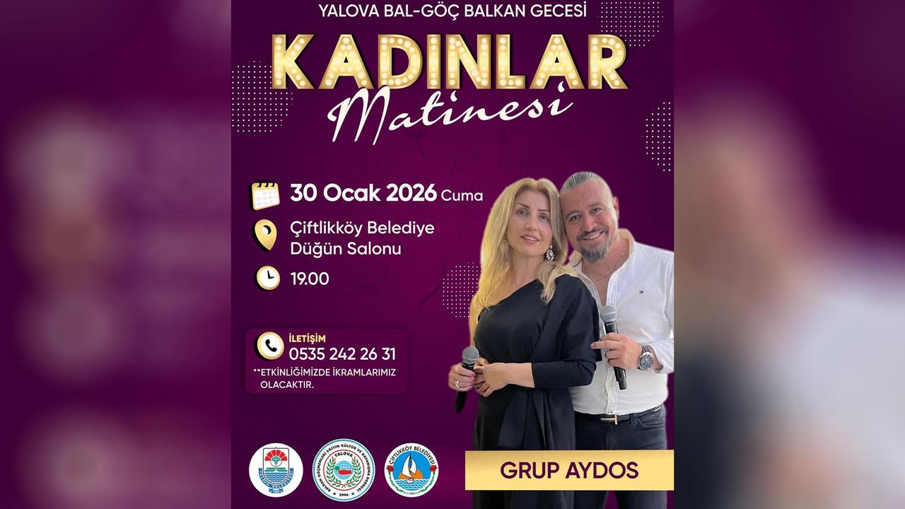 Dernek tarafından düzenlenen “Yalova Bal-Göç Balkan Gecesi – Kadınlar Matinesi”, 30 Ocak 2026 Cuma günü saat 19.00’da Çiftlikköy Belediye Düğün Salonu’nda gerçekleşecek.