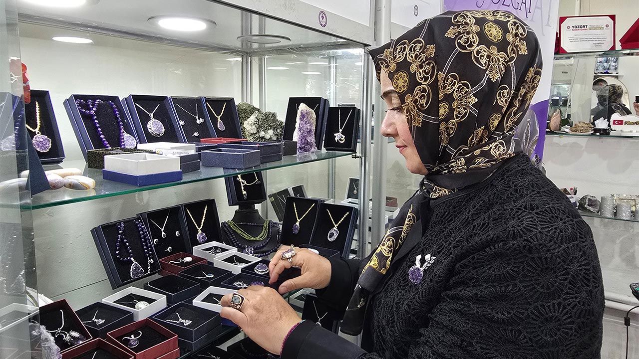Taşların özelliklerine değinen Türker, "Mor renkli olan ametist taşı alternatif tıpta da kullanılmakta. Vücuttaki negatif enerjiyi ve stresi aldığı, pozitif enerjiye çevirdiği bilinir. Baş ağrısı, migren ve uykusuzluğa iyi geldiği bilinmekte. Bu taşlardan işlediğimiz takıları hem görsel olarak hem de şifasından faydalanmak adına çok talep görüyor. Gittiğimiz fuar ve festivallerde çok yoğun ilgiyle karşılaşıyoruz. Mavi renkli olan taş kalsedon taşıdır. Eski çağlarda Bizanslı avukatların duruşmalara girmeden önce mutlaka kalsedon taşı taktığı öğrendiğimiz bilgilerden. Başarı ve nazar taşı olarak bilinir. Radyasyonu çekmesi, stresi alması ve başarı taşı olması sebebiyle çok rağbet gören taşlarımızdan. Günümüzde ‘Avukat Taşı' olarak biliniyor" şeklinde konuştu.
