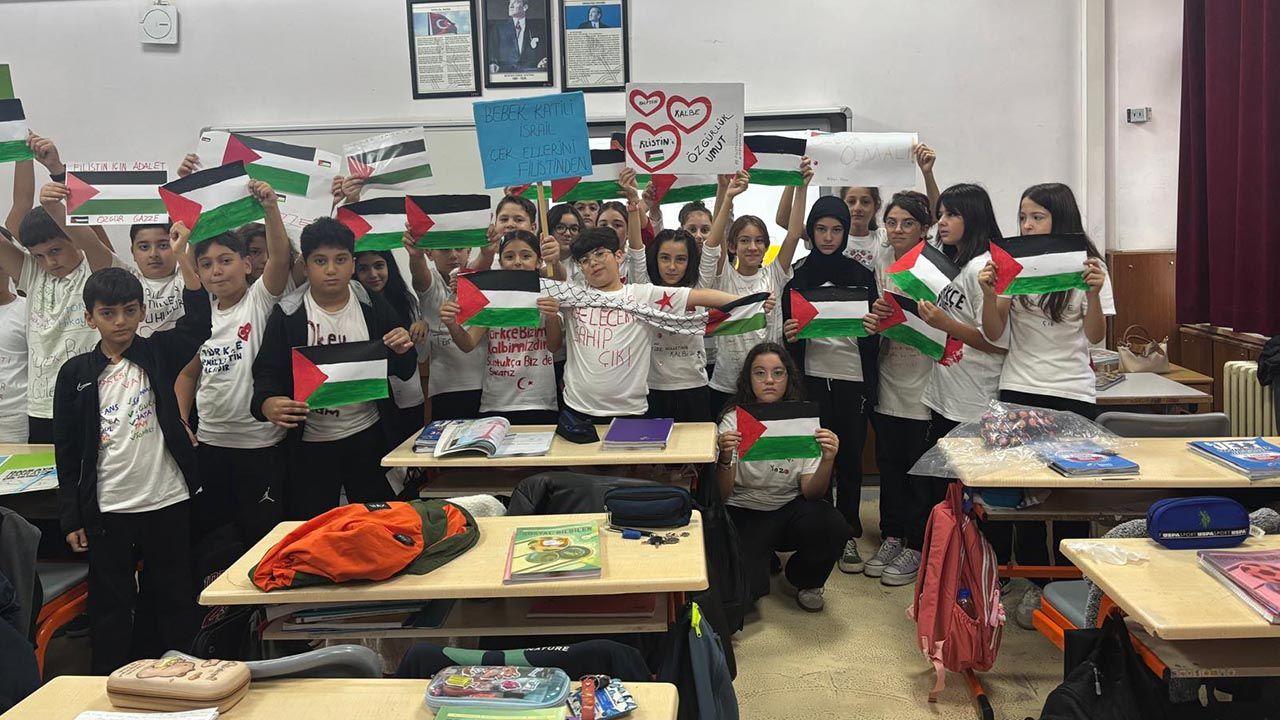 Bu kapsamda Yalova genelindeki tüm okullarda öğrenciler, öğretmenleriyle birlikte Filistin’de yaşanan insanlık dramına dikkat çekmek; barış, kardeşlik ve dayanışma mesajı vermek amacıyla bir araya geldiler.