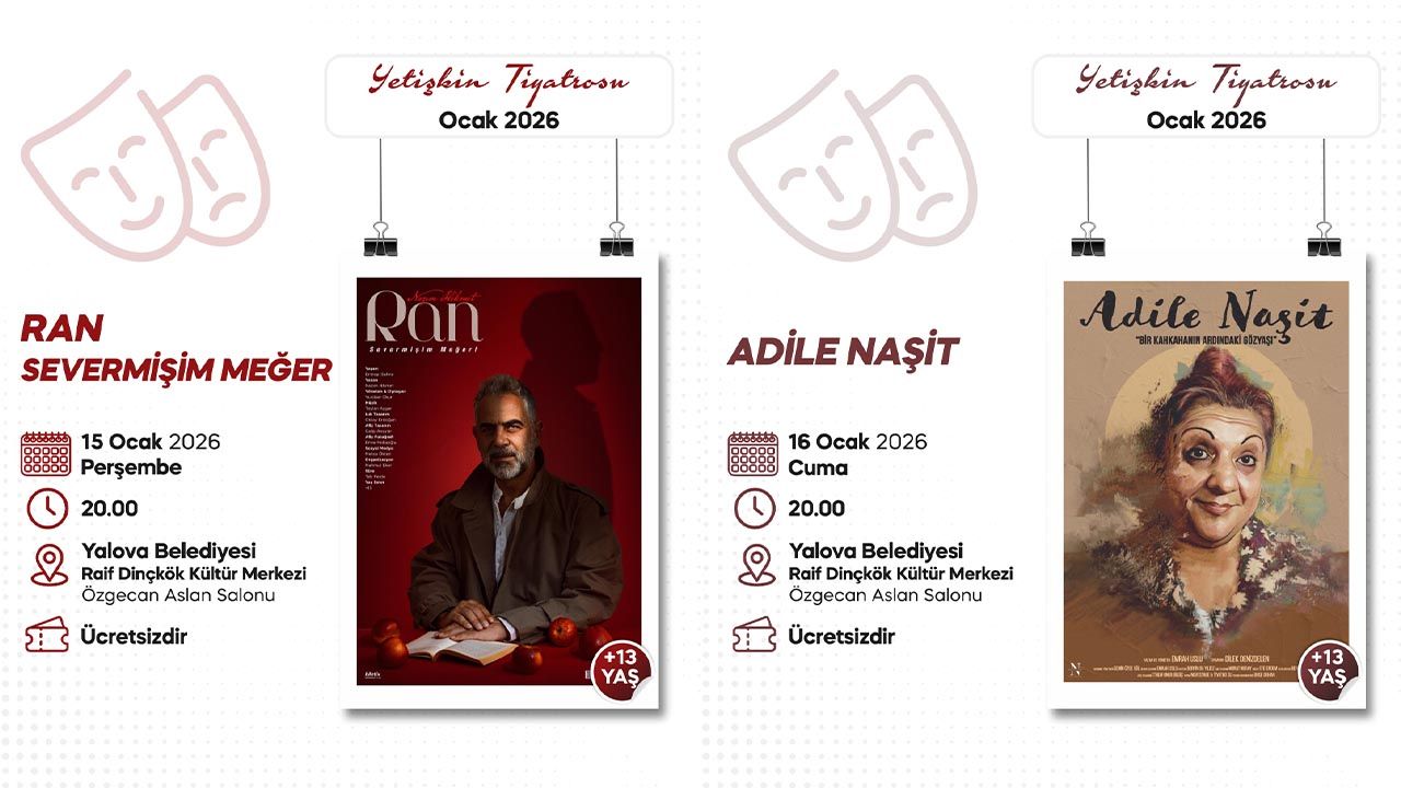 Türk edebiyatının usta ismi Nazım Hikmet Ran ile Türk sinema ve tiyatrosunun unutulmaz yüzü Adile Naşit, Yalova’da tiyatro sahnesinde anılacak. Nazım Hikmet Ran’ın ebediyete intikalinin 61. yılı anısına sahnelenecek olan “RAN – Severmişim Meğer” adlı tiyatro oyunu, 15 Ocak Perşembe akşamı saat 20.00’de Raif Dinçkök Kültür Merkezi Özgecan Aslan Salonu’nda izleyiciyle buluşacak. Etimesgut Belediyesi ev sahipliğinde sahnelenen ve Entropi Sahne yapımı olan oyunda, usta oyuncu Yurdaer Okur hem yönetmen hem de oyuncu olarak sahne alıyor. Nazım Hikmet’in şiirleri ve mektuplarından sahneye uyarlanarak, şairin sürgünlerle, aşkla ve memleket özlemiyle örülü yaşamını güçlü bir anlatımla tiyatro sahnesine taşıyor. Tiyatro etkinlikleri, 16 Ocak Cuma günü ise “Adile Naşit – Bir Kahkahanın Ardındaki Gözyaşı” adlı oyunla devam edecek. Türk sinema ve tiyatro tarihinin simge isimlerinden Adile Naşit’in yaşam öyküsünü konu alan oyun, izleyiciyi sanatçının gülen yüzünün ardında saklı kalan kırılgan dünyasıyla buluştururken, bir dönemin sıcaklığını ve sahne arkasındaki yalnızlığını etkileyici bir sahne diliyle aktarıyor. Tek perdeden oluşan ve 70 dakika süren oyun, yalnızca bir tiyatro gösterimi değil; bir dönemin hafızasını, bir annenin şefkatini ve bir sanatçının içsel yolculuğunu anlatan güçlü bir bellek çalışması olarak öne çıkıyor. Yalova Belediyesi Kültür, Sanat ve Sosyal İşler Müdürlüğü tarafından düzenlenen her iki tiyatro etkinliğine katılım rezervasyonla sağlanacak. Tiyatroseverler, yalova.bel.tr adresi üzerinden rezervasyon yaptırarak etkinliklere katılabilecek. Yalova Belediyesi, kültür ve sanatı kentin dört bir yanına taşımaya devam ederken, sanatseverleri bu iki özel tiyatro akşamına davet ediyor.