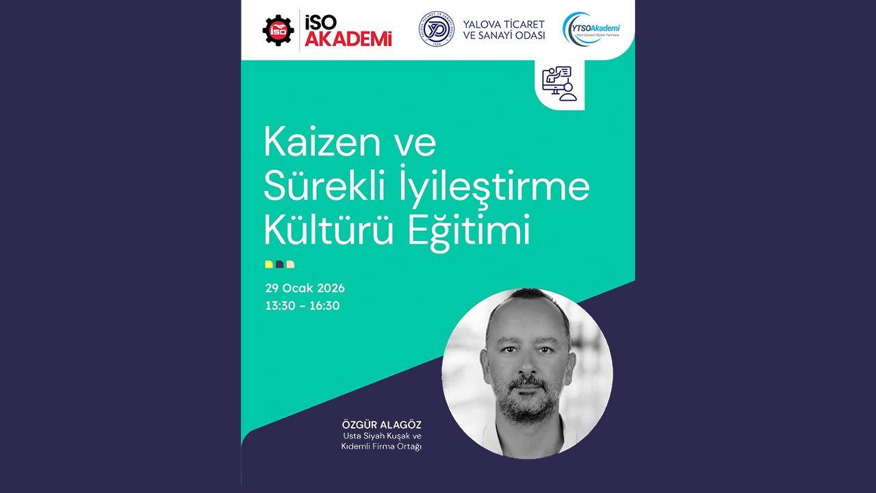 Yalova Ticaret ve Sanayi Odası (YTSO), işletmelerde sürekli gelişim ve verimlilik kültürünü güçlendirmek amacıyla “Kaizen ve Sürekli İyileştirme Kültürü Eğitimi” düzenliyor. Eğitim, 29 Ocak 2026 tarihinde 13.30 – 16.30 saatleri arasında gerçekleştirilecek. Eğitim kapsamında Kaizen’in temel prensipleri, sürekli iyileştirme yaklaşımı ve hızlı problem çözme yöntemleri ele alınacak. Katılımcılara iyileştirme fırsatlarının nasıl belirleneceği küçük adımlarla büyük ve kalıcı sonuçlara nasıl ulaşılacağı pratik uygulamalarla anlatılacak. Programda ayrıca çalışan katılımının artırılması, Kaizen fikir sisteminin kurulması, günlük yönetim rutinlerinde iyileştirmenin sürdürülebilir hale getirilmesi ve örnek uygulamalarla hızlı kazanımlar elde edilmesi konularına da yer verilecek.